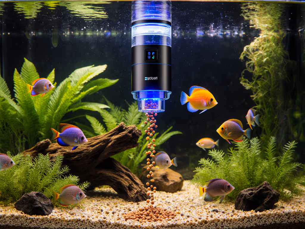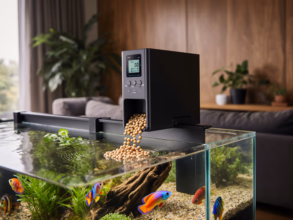 Tilt your auto feeder 5-10 degrees toward the dispensing mechanism. This slight angle prevents pellets from settling into static piles. Pair this with a minimal vibration setting (if available) (enough to disrupt settling but not so strong it accelerates separation). Monitor your tank for 24 hours after adjustment; if food clouds the water, reduce vibration intensity. For full setup and dialing in portions, follow our feeder calibration guide.